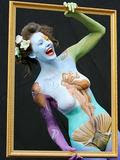 In blue, making the art of painting the body more beautiful. Because of the model's curves more visible. Sexuality, beauty, very nice to enjoy the eye. Moreover, with the art of painting the body, usually the model is performed without a single yarn.